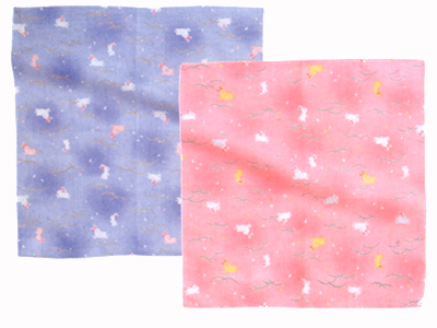 つゆ草と兎柄のガーゼハンカチです。女性に大人気の商品。